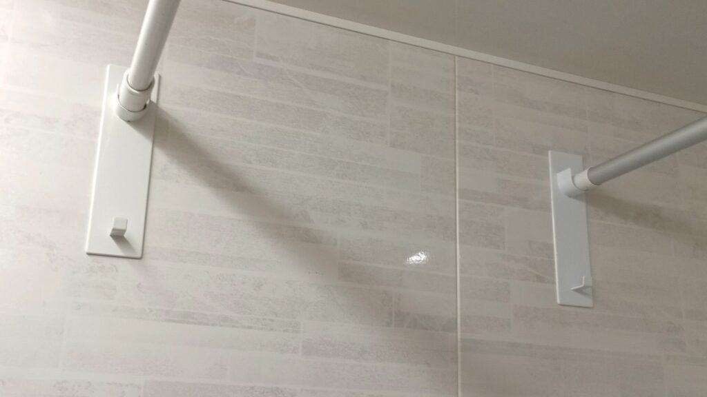我が家では、↓を壁にくっつけて、物干し竿を設置しています。