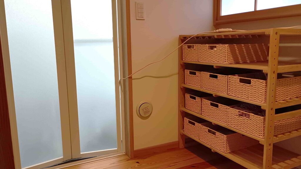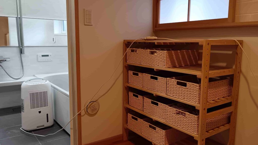 物干しが設置できたら、除湿器を置きます。(オススメの除湿器については後ほど説明します。)