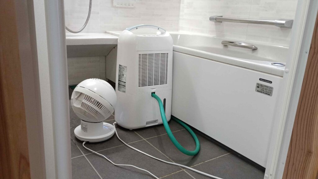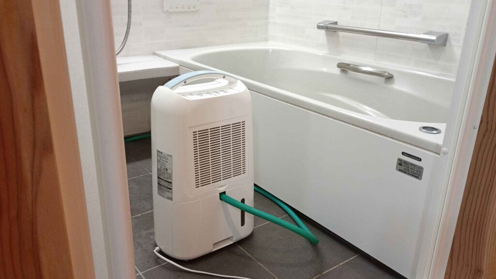 せっかく浴室で使うので、我が家ではホースで排水できるタイプの除湿器を選びました。