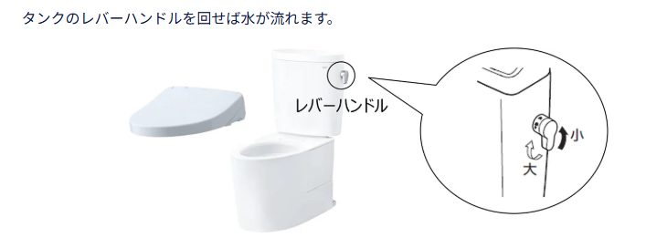 レバーがついていない便器の場合、停電時の水の流し方がちょっと面倒そうですよね…