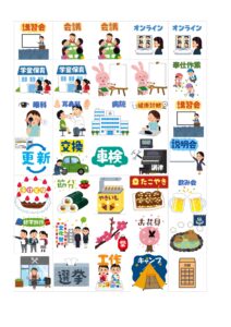 文字(漢字)だけだと小学校低学年の娘が読めないので、なるべくイラストを多くして、見るだけで予定が分かるように工夫しています。