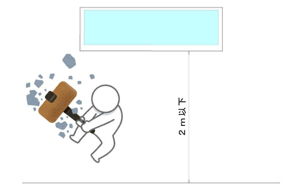 住宅性能表示の基準では、地面やバルコニーから窓の下端までの高さが2m以下の開口部を、