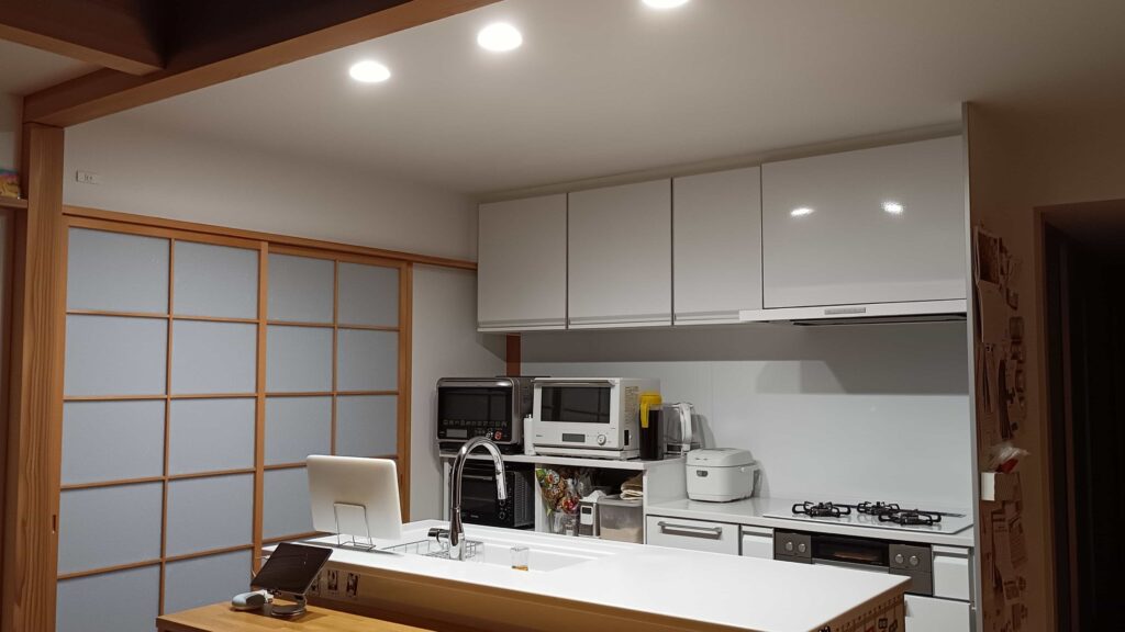 一人起きても、キッチンの照明がすでについているので、気持ちが明るくなります。