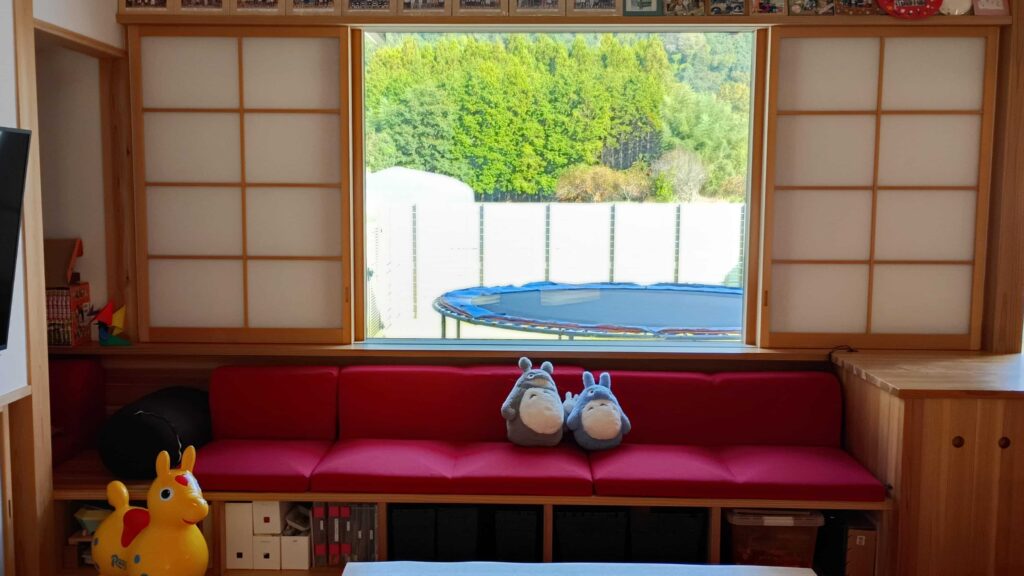 ベンチの下は子供たちの収納スペースとして利用しています。