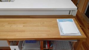 四段目は、週末に子供が持ち帰ってきた「上靴」や、週に1回洗うことにしている「室内用のスリッパ」などを置いています。