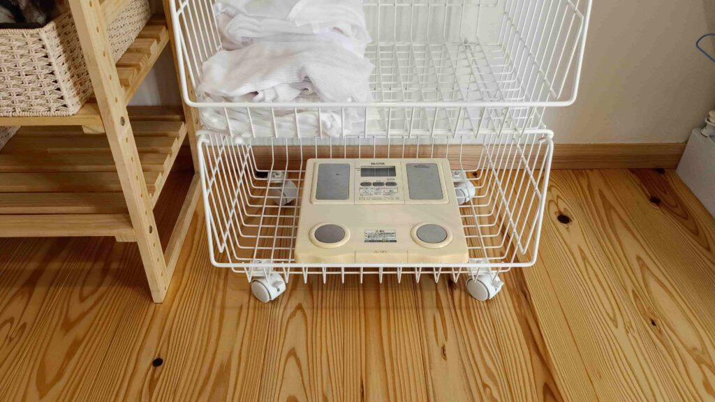 意外と置き場所に困る体重計も、まとめて収納できます。