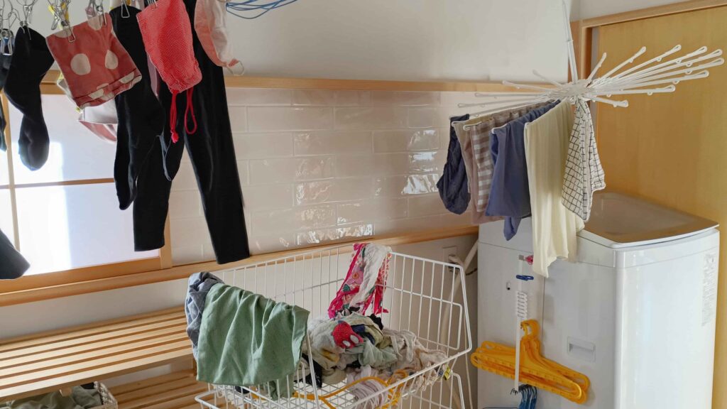 我が家では、お風呂に入る前に脱いだ服は、家族各々で分類して洗濯カゴに入れてもらうようにしています。