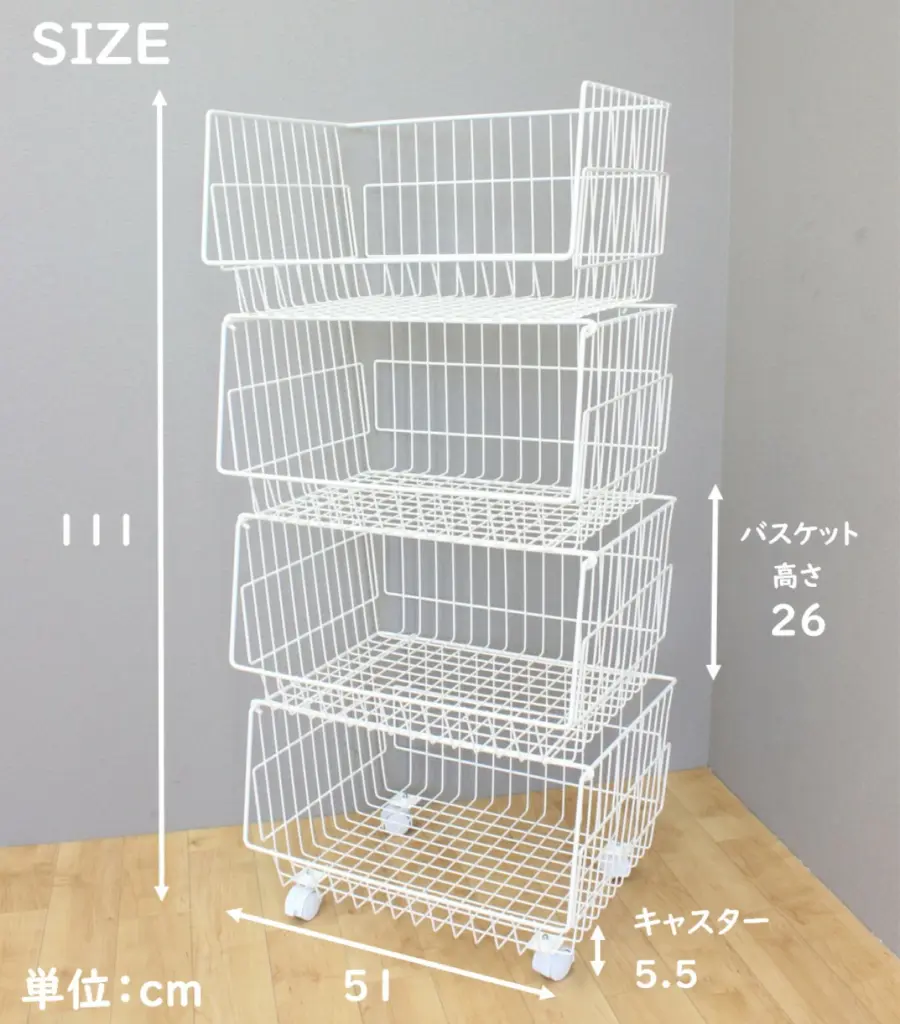 店舗でよく見かける陳列用のキャスター付きのカゴです。