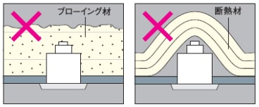 M型ダウンライトは、断熱材を設置している箇所には使えません。