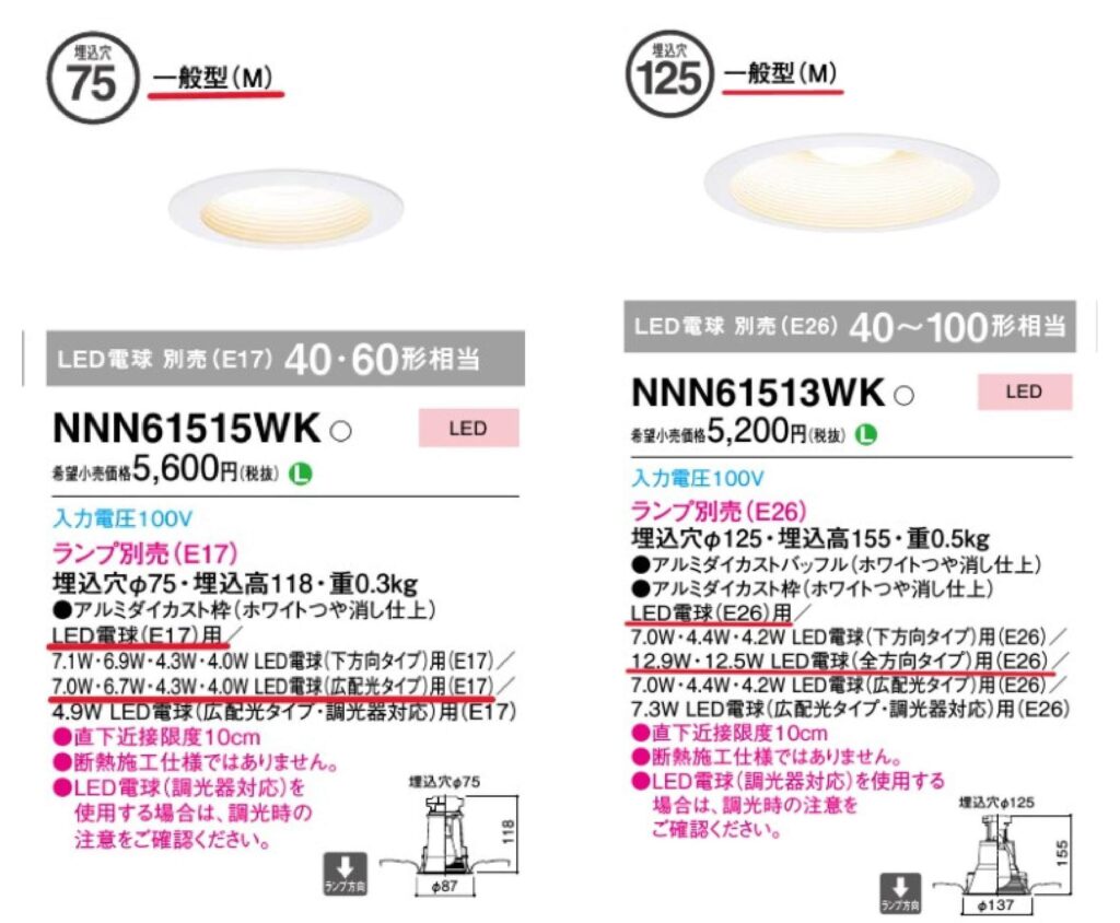 ではPanasonicカタログをもとに、M型ダウンライトについて細かく見ていきます。