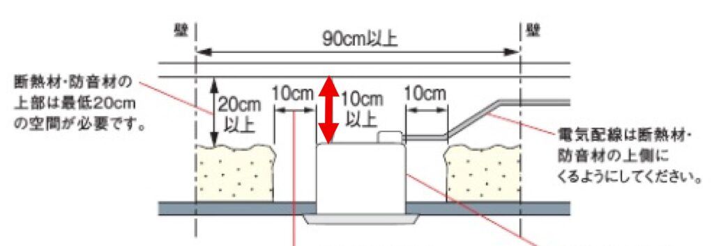 また放熱するため、M型ダウンライトの上部にある程度のスペースを設けなければなりません。