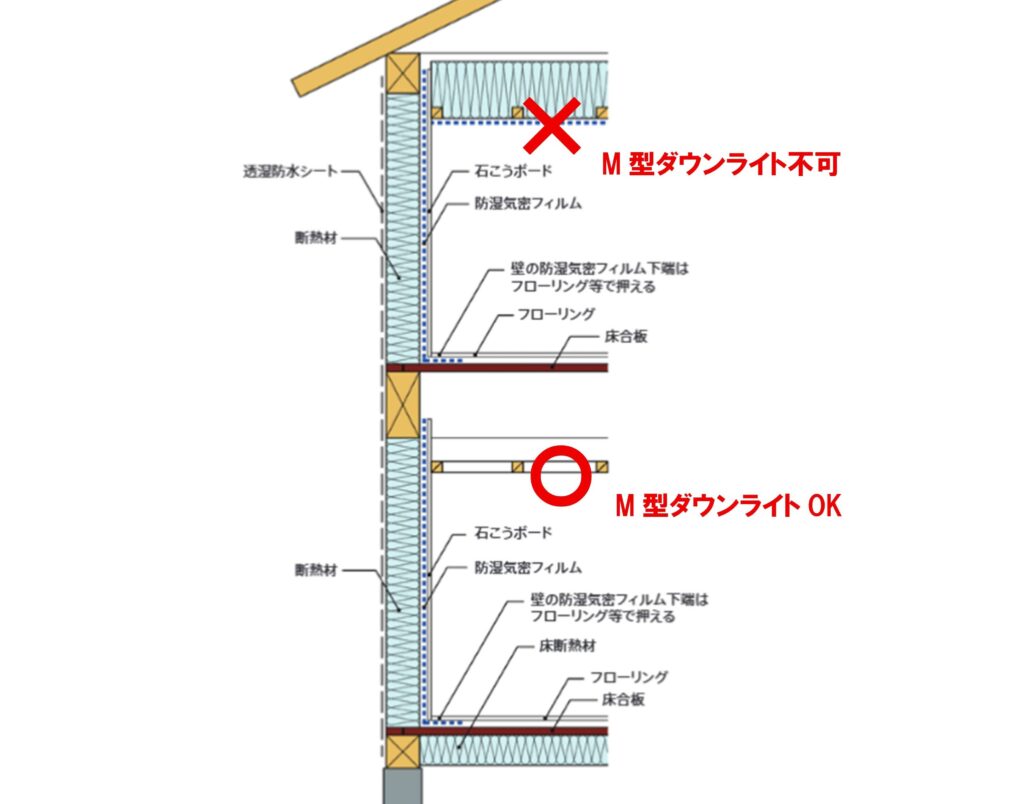 ただし、既存ダウンライトに調光配線してある場合は、スマート電球に交換できません。 - M型ダウンライトを使うと、気密性が損なわれるって聞いたけど大丈夫?