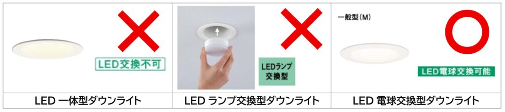 スマート電球が設置できるのは、「LED電球交換タイプ」のダウンライト。