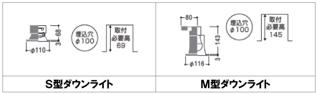 またダウンライトは、断熱材の施工の仕方によって、下図のように、大きく「S型」と「M型」に分けることができます。