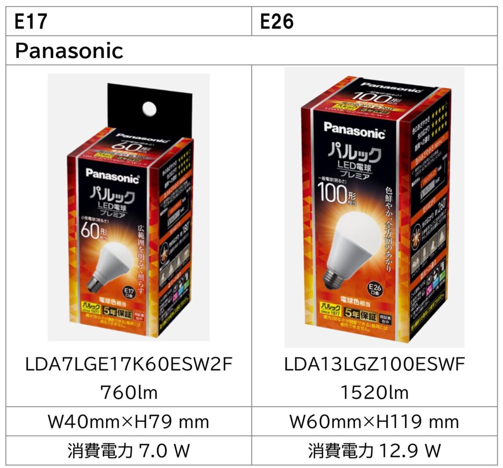 - 消費電力:一般的な適合電球が7.1Wまでなのに対し、5.1W
