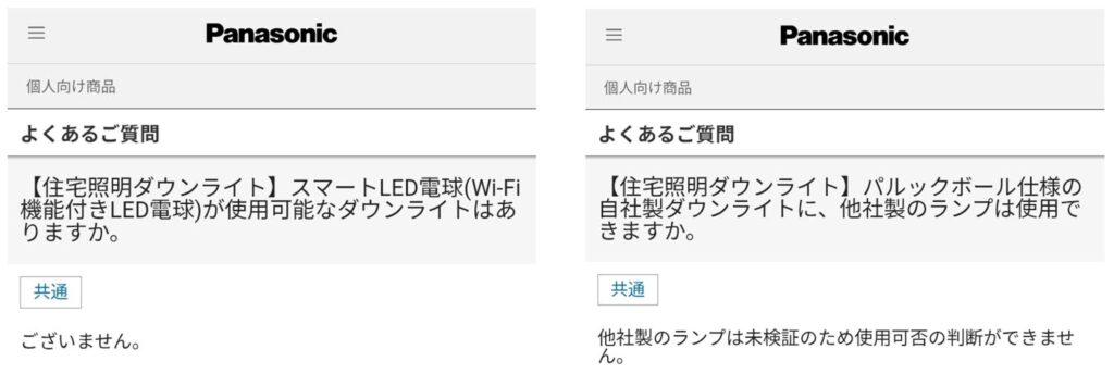 まとめると、Panasonicでスマート電球に使えるM型ダウンライトは下記になります。